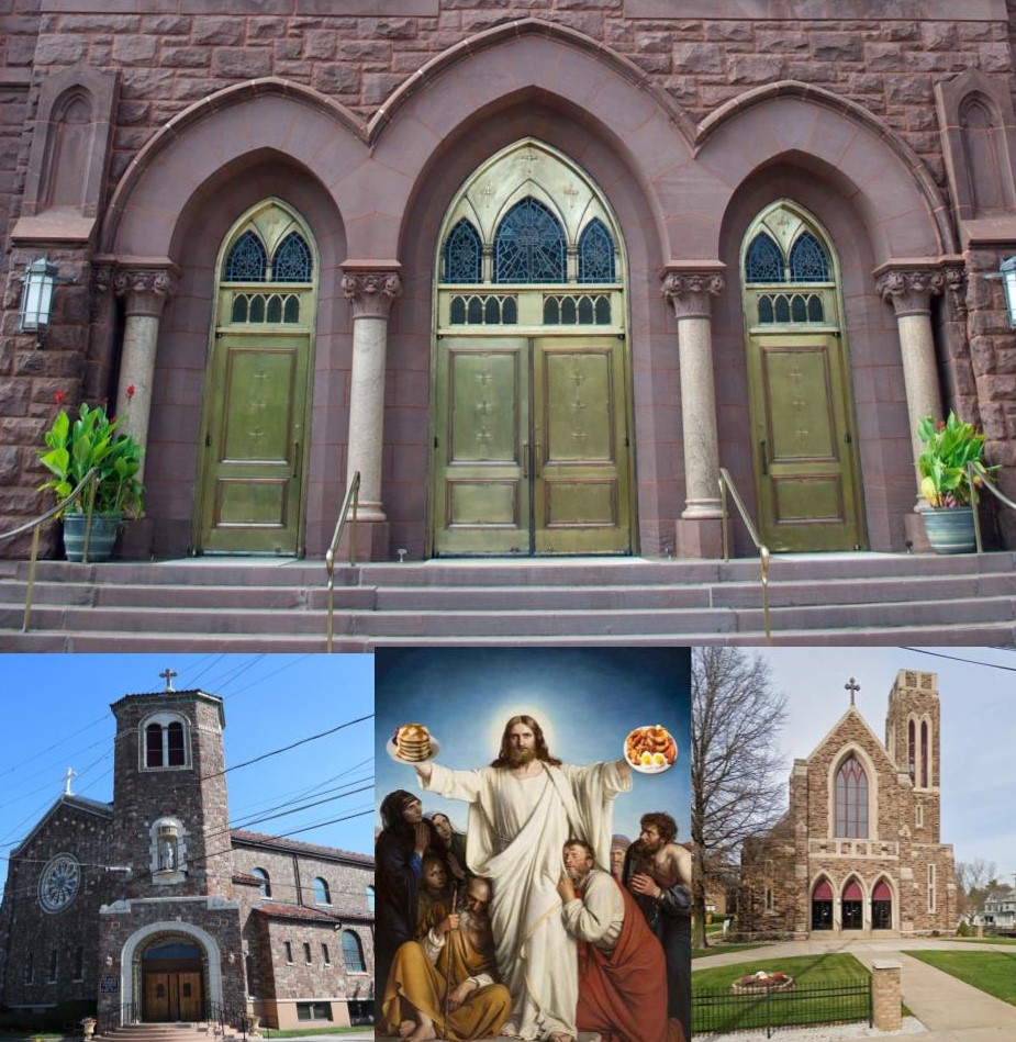But the news is not all bad. “There are some exciting changes because of this,” said Clunibus.  “On behalf of the Erie Catholic Diocese I am happy to announce that these three churches are going to merge into one glorious establishment. The Sacred Heart of Saint Paulandrew’s House of Worship and Pancakes!”